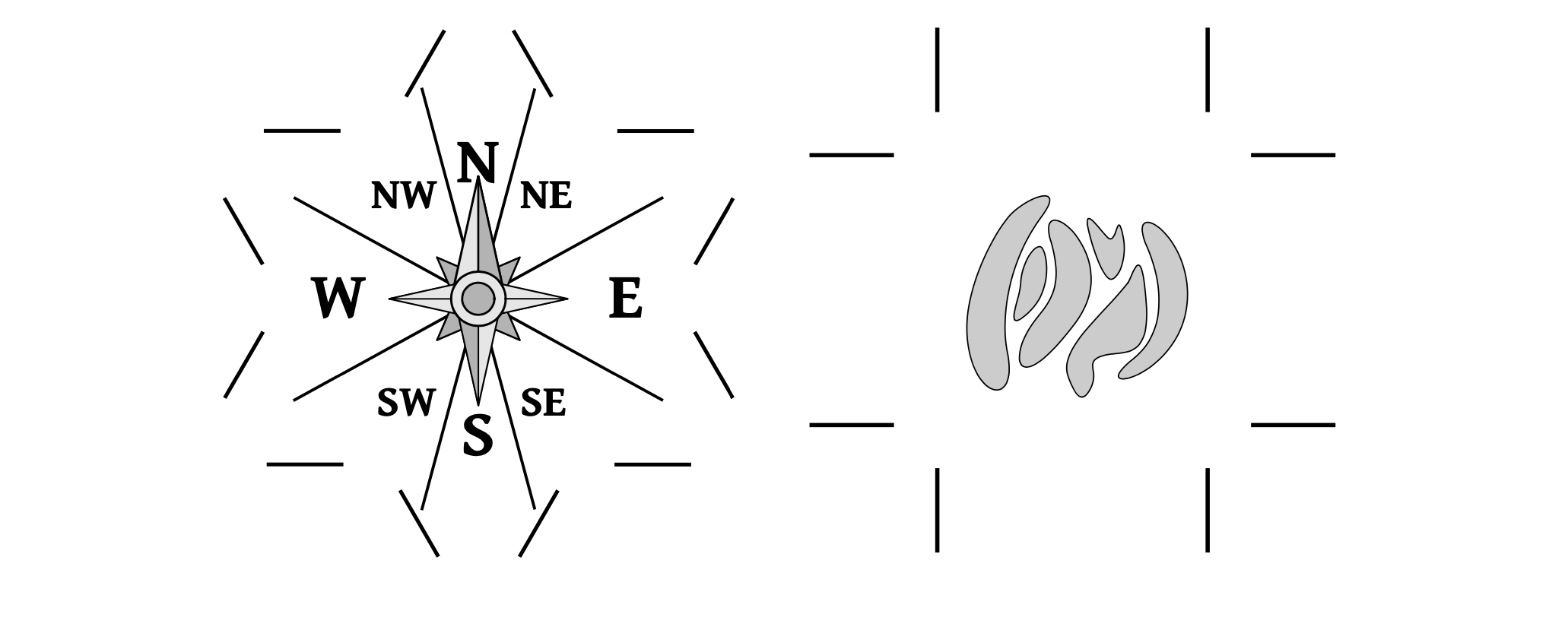- la Rose des vents, les différentes constructions et le Vaal Er Num sontici